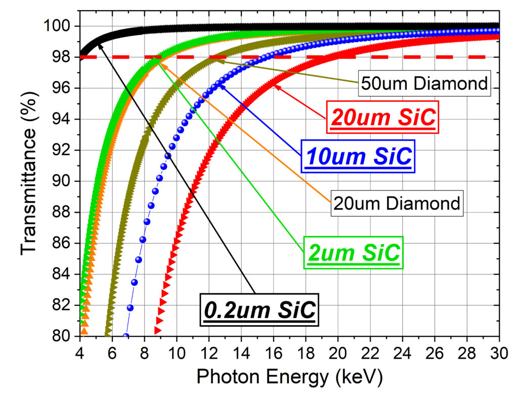 Product description and specifications: Silicon Carbide XBPM sensors are composed of diodes in 2×2 array configurations, with gaps of ~6 µm, large active areas and a central region with defined high transparencies. XBPMs are typically supplied together with 3×4 cm² aluminum-core circuit boards for easy connection. Mounted sensors are air- as well as UHV- (10⁻⁸ mbar) compatible. Mounted sensors are also available with metal covers to avoid damage to the sensor surface during handling and installation. All sensors can be operated at zero bias with >80% Charge Collection Efficiency (CCE).