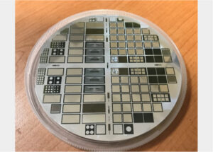 Fig.3 20μm SiC wafer showing all different devices: intensity, position and profile monitors with different geometries